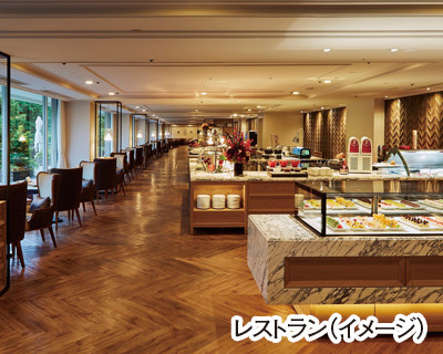 ●東京プリンスホテル「ブッフェダイニングポルト」は都会とは思えない豊かな緑に囲まれた落ち着いた雰囲気です。開放的な雰囲気の中でお食事をお楽しみいただけます。
