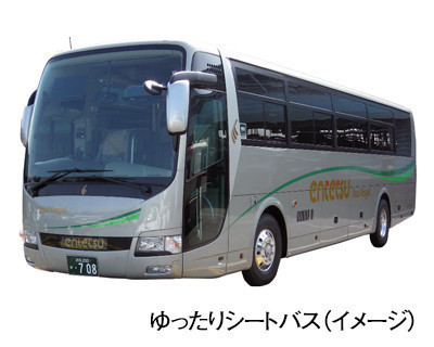 ●足元広々の36名乗りゆったりシートバスで運行します。