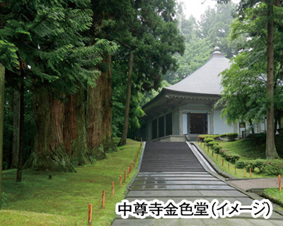 世界遺産 中尊寺(案内人付で金色堂・讃衡蔵・秘佛御開帳拝観)・平泉(昼食)